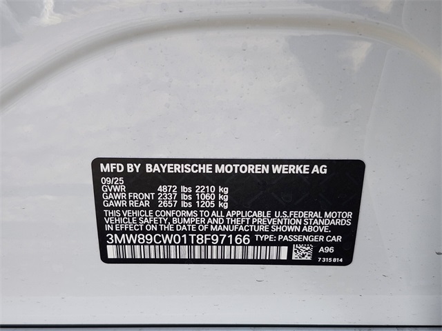 - VIN : 3MW89CW01T8F97166