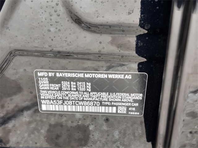 - VIN : WBA53FJ08TCW86870