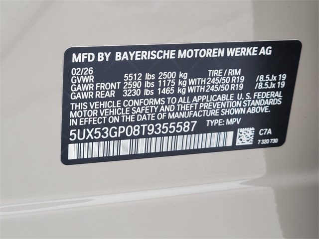 - VIN : 5UX53GP08T9355587