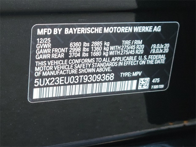 - VIN : 5UX23EU03T9309368