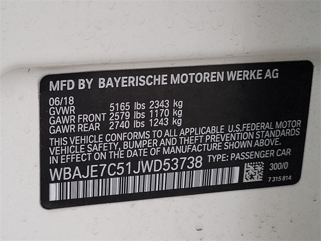 - VIN : WBAJE7C51JWD53738