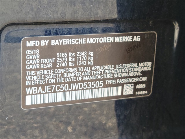 - VIN : WBAJE7C50JWD53505