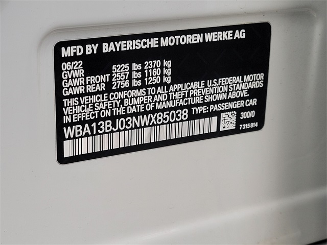 - VIN : WBA13BJ03NWX85038