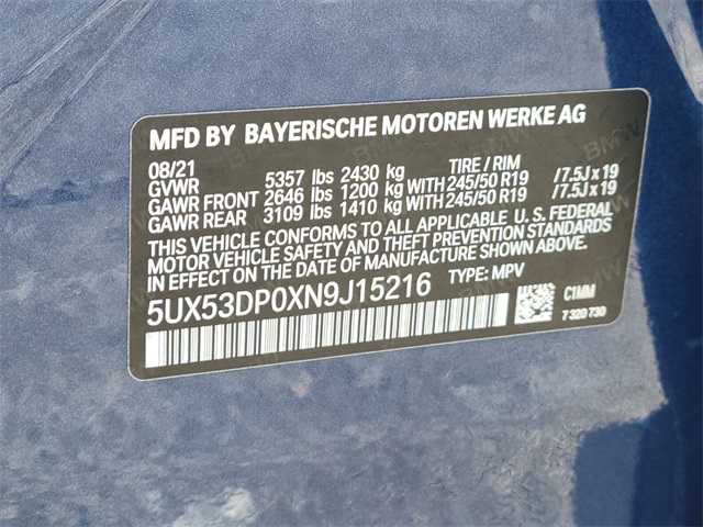 - VIN : 5UX53DP0XN9J15216