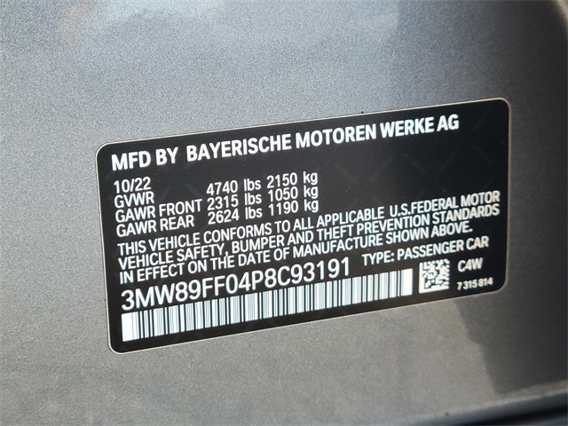 - VIN : 3MW89FF04P8C93191