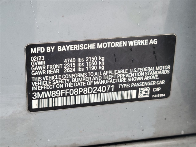- VIN : 3MW89FF08P8D24071