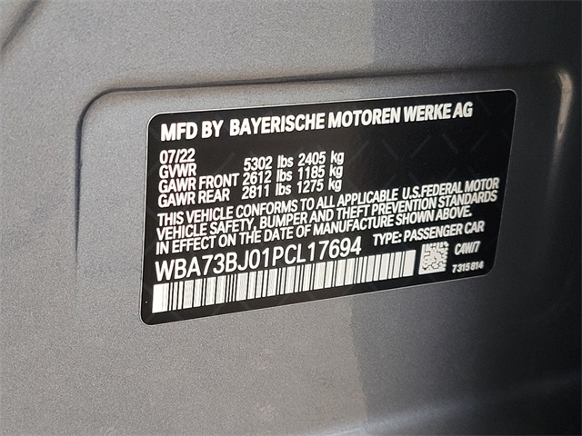 - VIN : WBA73BJ01PCL17694