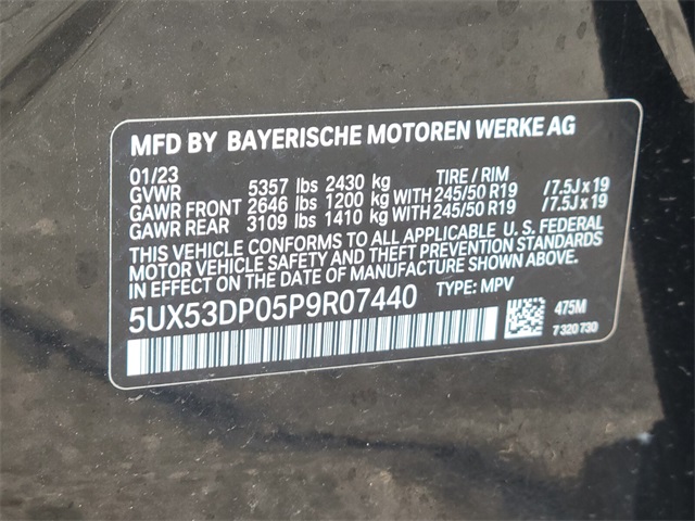 - VIN : 5UX53DP05P9R07440