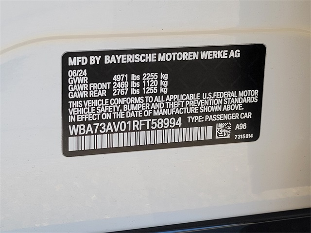 - VIN : WBA73AV01RFT58994