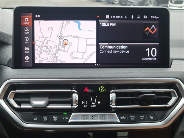 The 2024 BMW X3 is loaded with advanced technology and comfort amenities such as: Active Park Distance Control, Head-Up Display, Heated Front Seats, Heated Steering Wheel, Live Cockpit Pro w/Navigation, Lumbar Support, Navigation System, Panoramic Moonroof (ZPA), Parking Assistance Package, Parking Assistant Plus, Premium Package w/ZPA, Remote Engine Start, Surround View w/3D View and much more.