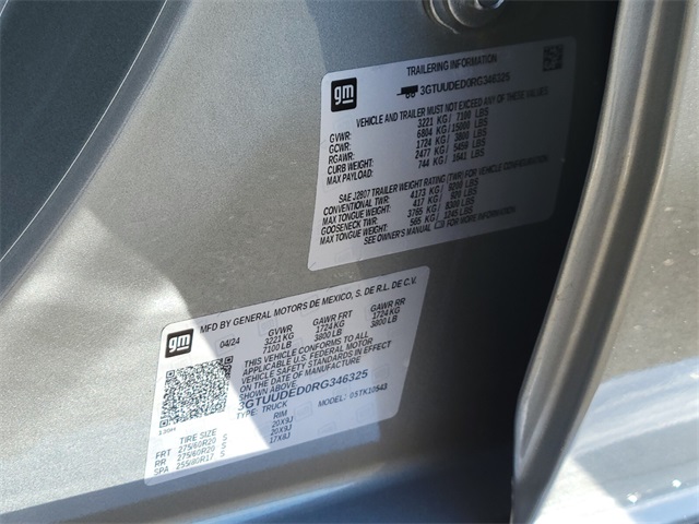 - VIN : 3GTUUDED0RG346325