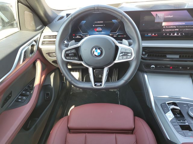 The 2025 BMW 430i Gran Coupe combines sleek, coupe-inspired styling with the practicality of a four-door design. Its turbocharged 2.0L engine with mild-hybrid technology delivers smooth performance and efficiency, paired with an 8-speed automatic transmission. Inside, the cabin features modern technology including a large infotainment display and smartphone integration. A refined and sporty luxury sedan, the 430i Gran Coupe is built for both comfort and everyday usability. This 4 Series comes in a Brooklyn Grey Metallic exterior along with a Tacora Red interior.